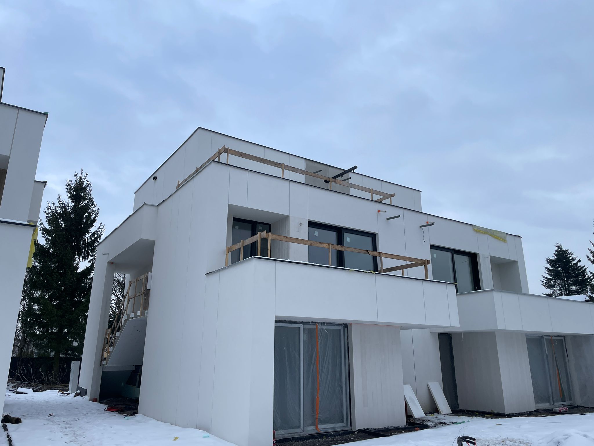 Proste linie, płaskie dachy, duże przeszklenia oraz harmonijna kolorystyka elewacji w odcieniach bieli, szarości i jasnego drewna tworzą elegancką i nowoczesną przestrzeń. Tarasy oraz przesunięcia kondygnacji nadają bryłom budynków wyjątkowy charakter, który wyróżnia Tarasy Moderno na tle innych inwestycji.